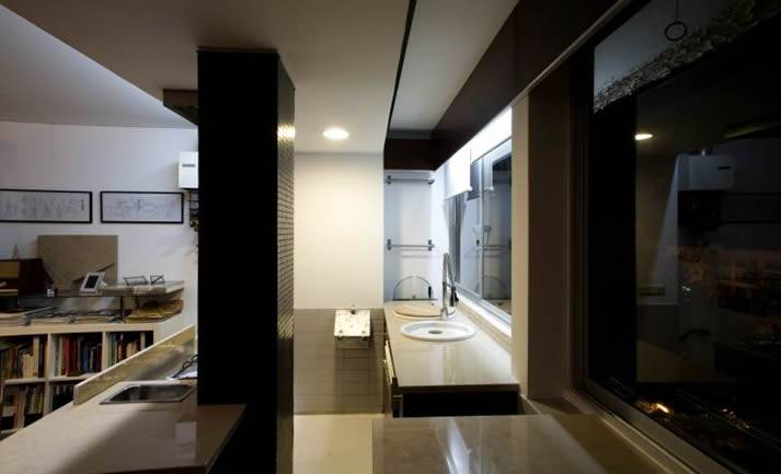 O programa requeria a manutenção das funções básicas da habitação como os espaços para preparação de refeições, de estar, de trabalho, para dormir, partindo do espaço configurado pelas paredes exteriores e estrutura do edifício. Tudo era possível. A intervenção apoiou-se no conceito geral de que o espaço seria dividido em duas grandes áreas, o espaço social, e o espaço privado, a separar os dois uma parede-armário multi-funcional contendo os arrumos e o acesso às zonas privadas dos quartos. Decidiu-se também que os espaços com funções muito específicas, cozinha e instalações sanitárias, seriam participantes dentro de um espaço aberto, surgindo na habitação como contentores com autonomia formal e material.